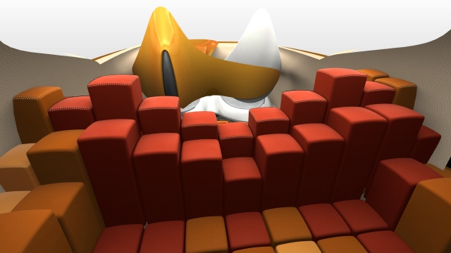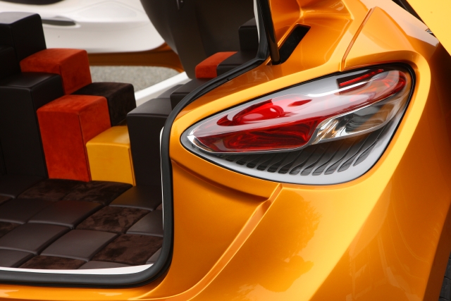 Gegenläufig angeschlagene Türen und der Verzicht auf die Mittelsäule erleichtern den Einstieg in den futuristisch, aber dennoch funktional gestalteten Innenraum. Der Fahrerplatz ist mit einem schwebenden Instrumententräger besonders leicht und luftig gestaltet. Der Fondbereich ist als variabler Spielraum für die Kinder ausgelegt.