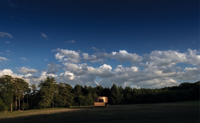 Über eine mobile Plattform lässt sich der Symbioz in das Obergeschoss transportieren. Auf der Terrasse können die Hausbewohner ihn als gemütlichen Rückzugsort zur Entspannung oder als abgeschlossene Kapsel zum konzentrierten Arbeiten nutzen.